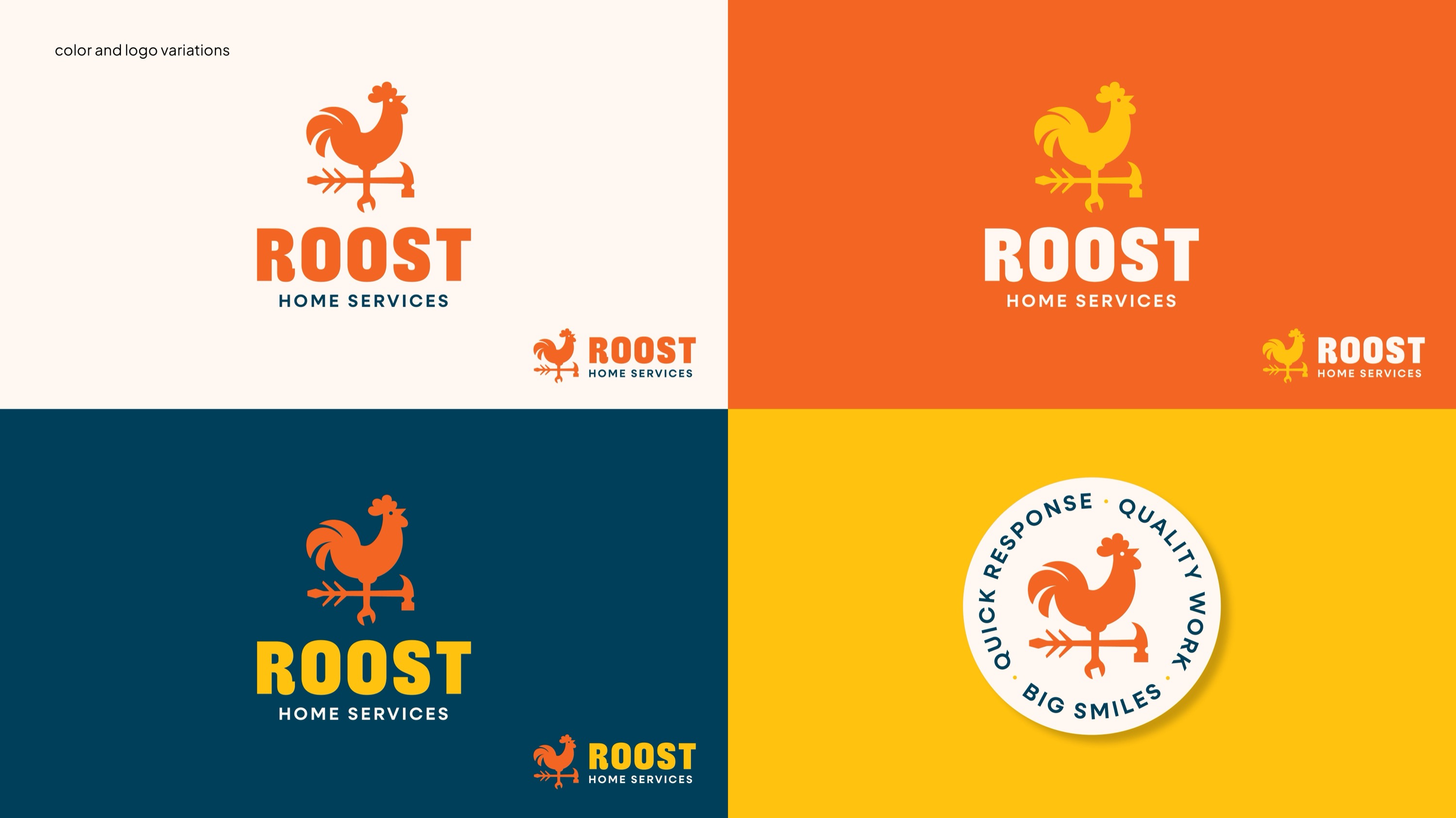 Roost set out to bring clarity, quality, and peace of mind to the often chaotic world of home repair—especially for busy, high-end homeowners in Southern Maine. With a curated network of skilled tradespeople and a single point of contact, Roost makes it easy to manage everything from window rot to deck repairs with clear estimates, responsive communication, and real progress updates. The identity needed to feel professional yet warm—trustworthy without being dry. The resulting brand system strikes that balance through a confident color palette, friendly type, and a distinctive mark that combines a rooster and tools—symbolizing both dependability and craft. From logomark to messaging, every detail was designed to help Roost stand out in a crowded category and signal a new, more enjoyable way to get things done around the house.