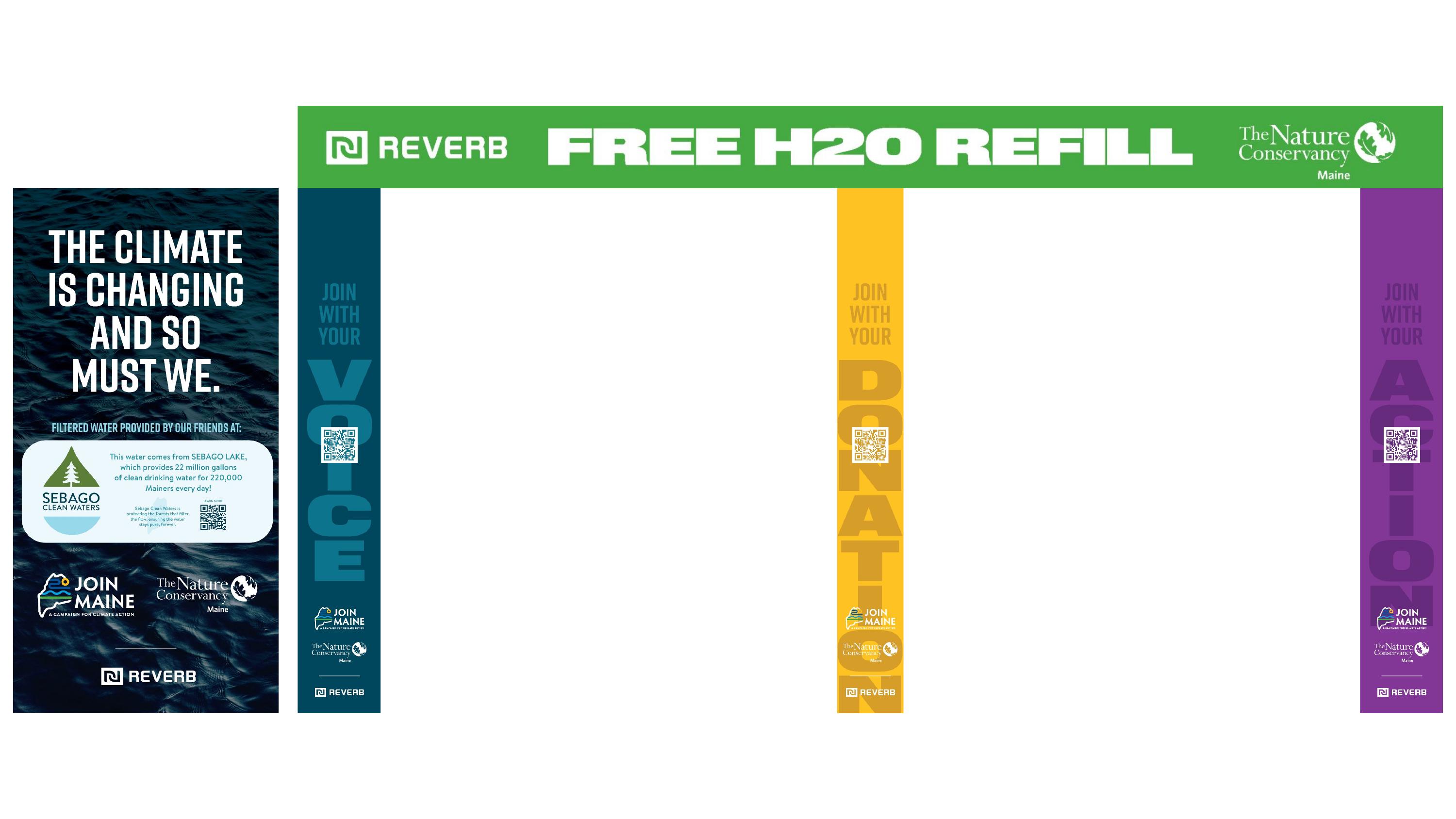 The Nature Conservancy launched the Join Maine campaign not only to raise $130 million for climate action initiatives, but also to introduce their mission to younger generations who may not yet be familiar with their work. Recognizing that Gen Z and Millennials have a strong understanding of climate issues, we focused on reaching them where they already are—even in spaces where TNC hasn't traditionally had a presence. Through our partnership with REVERB, we connected with this younger audience in an unexpected place: the summer concert series at Thompson's Point. Our bold, eye-catching creative covered REVERB's water bottle refill station, inspiring over 39,000 fan actions and preventing the use of more than 37,000 single-use water bottles. Additionally, our signage provided a platform to spotlight a local nonprofit, Sebago Clean Waters, further amplifying the impact of our presence.