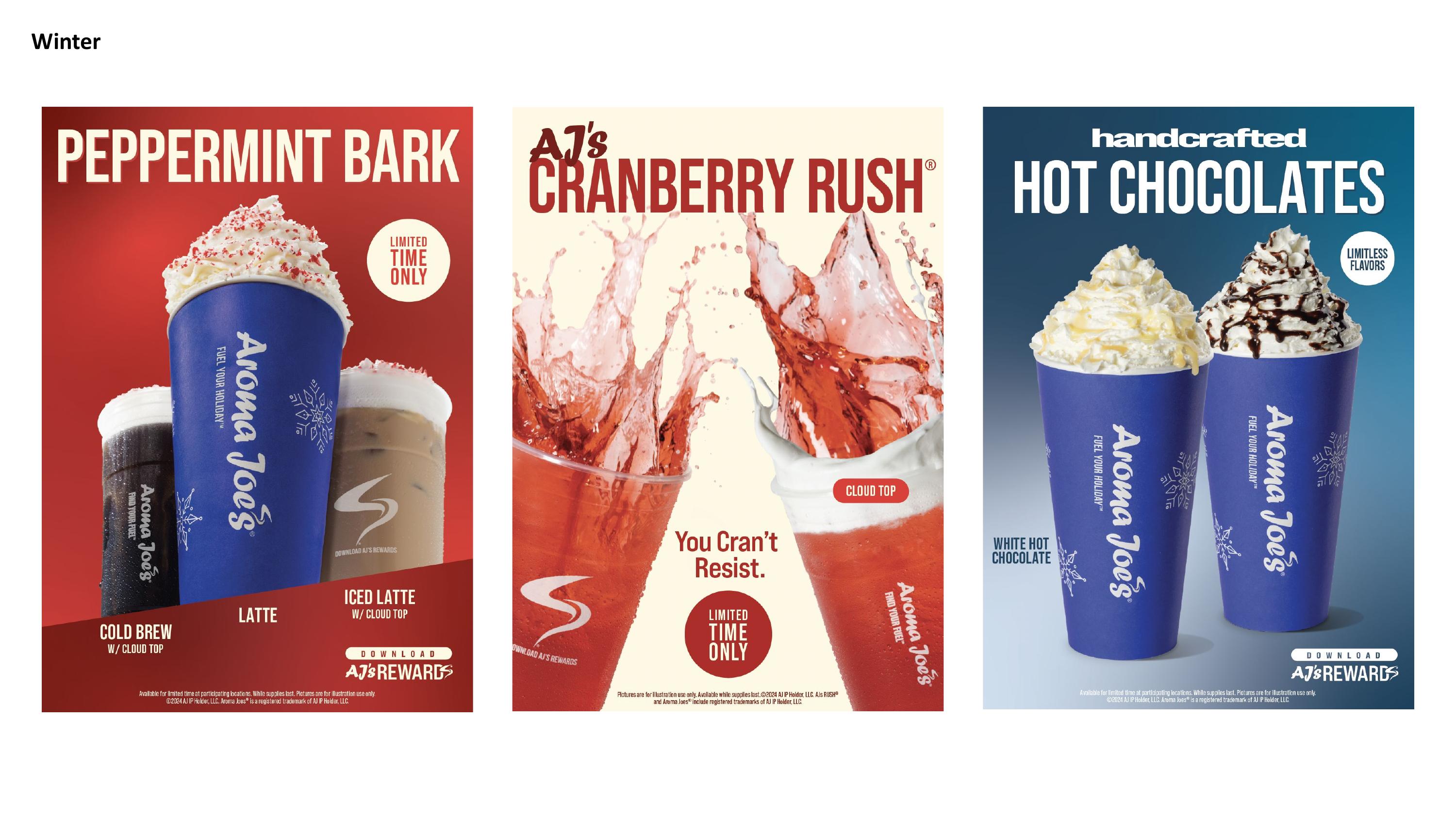 Aroma Joe's, one of the fastest-growing franchises in the country, sought to build brand recognition in highly competitive new markets. To address this, we crafted a dynamic brand evolution and vibrant campaign platform designed to engage a younger audience while remaining adaptable to different franchise locations. The strategy focused on creating a visual identity and tone that can resonate across diverse markets. With the use of vibrant brand colors, new dynamic product photography, and standardized clear, simplified messaging, we fully revamped AJ's POP advertising. This approach not only drove consumer engagement but also improved store efficiency, benefiting both customers and throughput. The result is a versatile system of seasonal and brand assets that enhances recognition and supports the franchise's expansion.